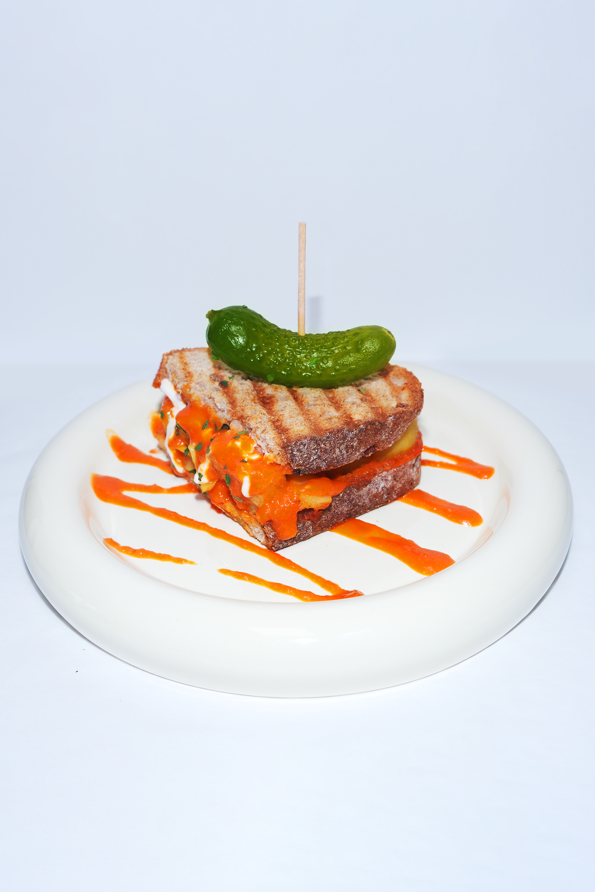Un bocata inspirado en la gilda, con mezcla cremosa de garbanzos, tofu y piparras.