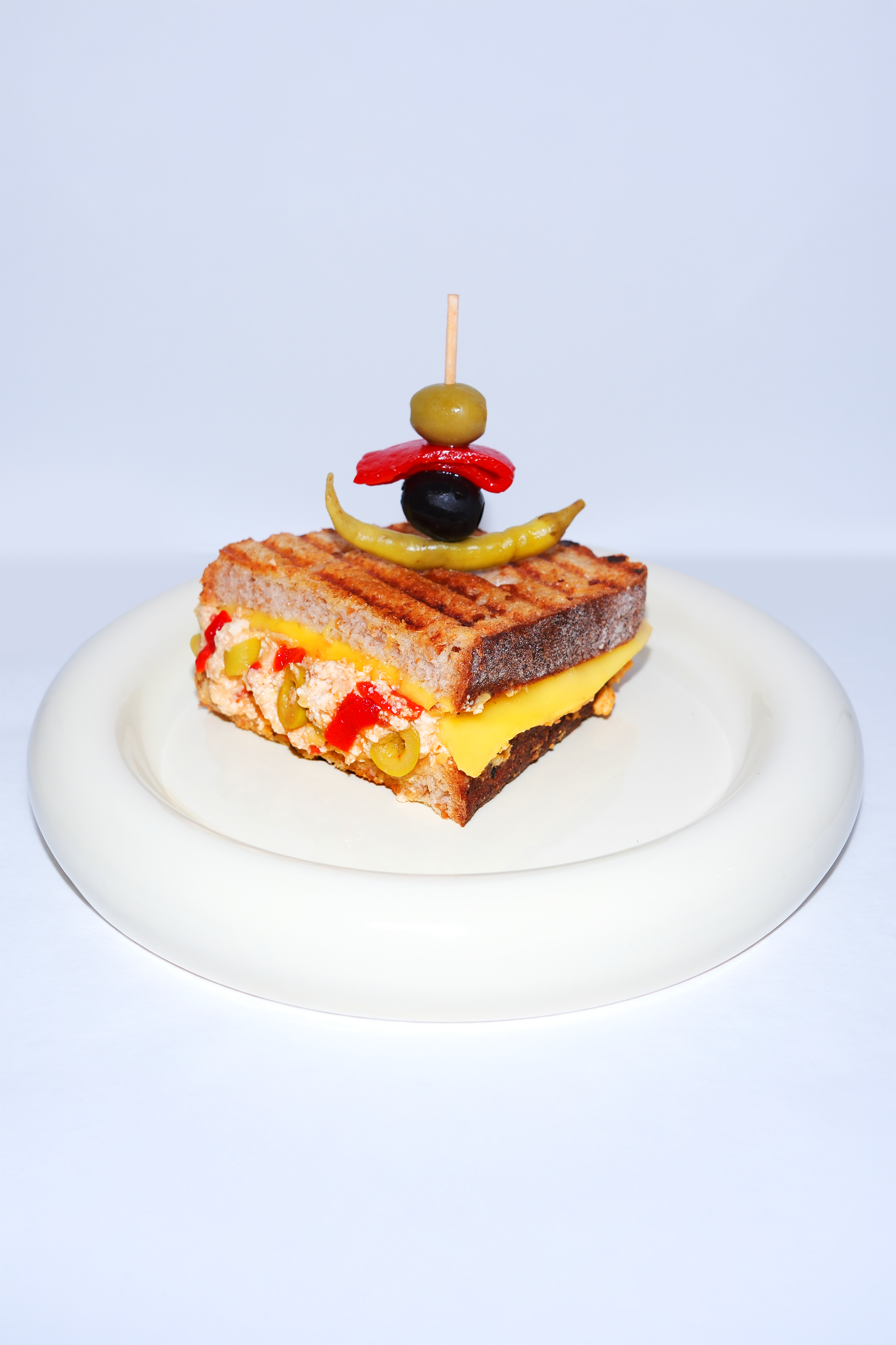Paté de garbanzo estilo “atunado” con aceitunas y pimientos asados.